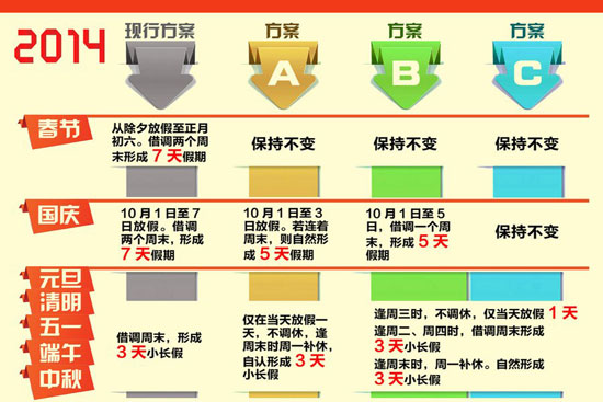 假日辦征求對(duì)假期意見(jiàn),三種方案拿出來(lái)征求民意,用哪個(gè)都會(huì)招來(lái)吐沫。其實(shí)這也不是眾口難調(diào),而是管得太寬。一年放多少假,怎么個(gè)放法,把公務(wù)員給規(guī)定好了就結(jié)了。至于一般群眾想怎么休息,讓大家自行決定不好嗎?有那個(gè)絞盡腦汁琢磨挪日子的精力,真不如好好想想怎么落實(shí)勞動(dòng)法,讓大家能踏實(shí)休息,踏實(shí)帶薪休假,踏實(shí)每周40小時(shí)工作制。瞧瞧古今中外,哪個(gè)國(guó)家、哪個(gè)朝代,有為放假這么嘬牙花子的么?